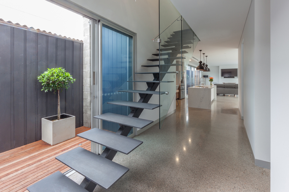 Efficient planning results in opportunities rather than compromises. Every square metre of site is utilised to add value to the development and more importantly value to everyday living. The compliance driven 900mm wide boundary setbacks that traditionally add no value and compromise internal areas, transform into narrow landscape strips that visually and physically extend internal space.